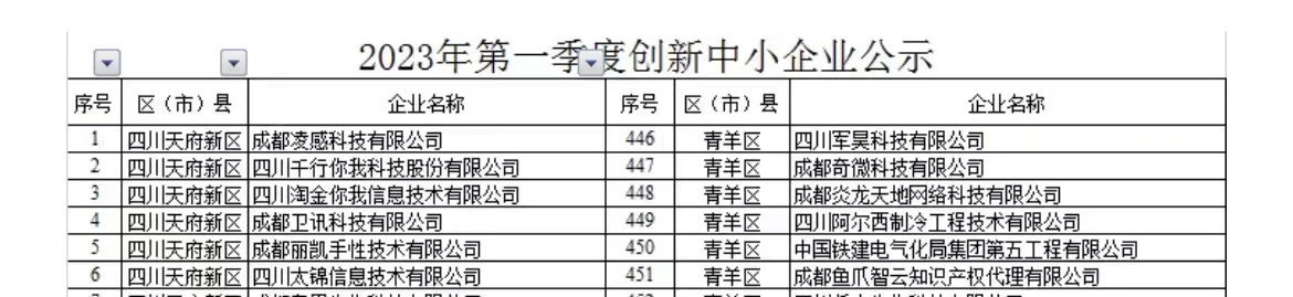 2023年第一季度創新型中小企業名單已公示,我公司被評為“創新型企業”,是首次獲得該稱號。認定為創新型中小企業是申請省級“專精特新”中小企業的必備條件,我公司將踔厲奮發,繼續向“專精特新中小企業”目標靠攏。